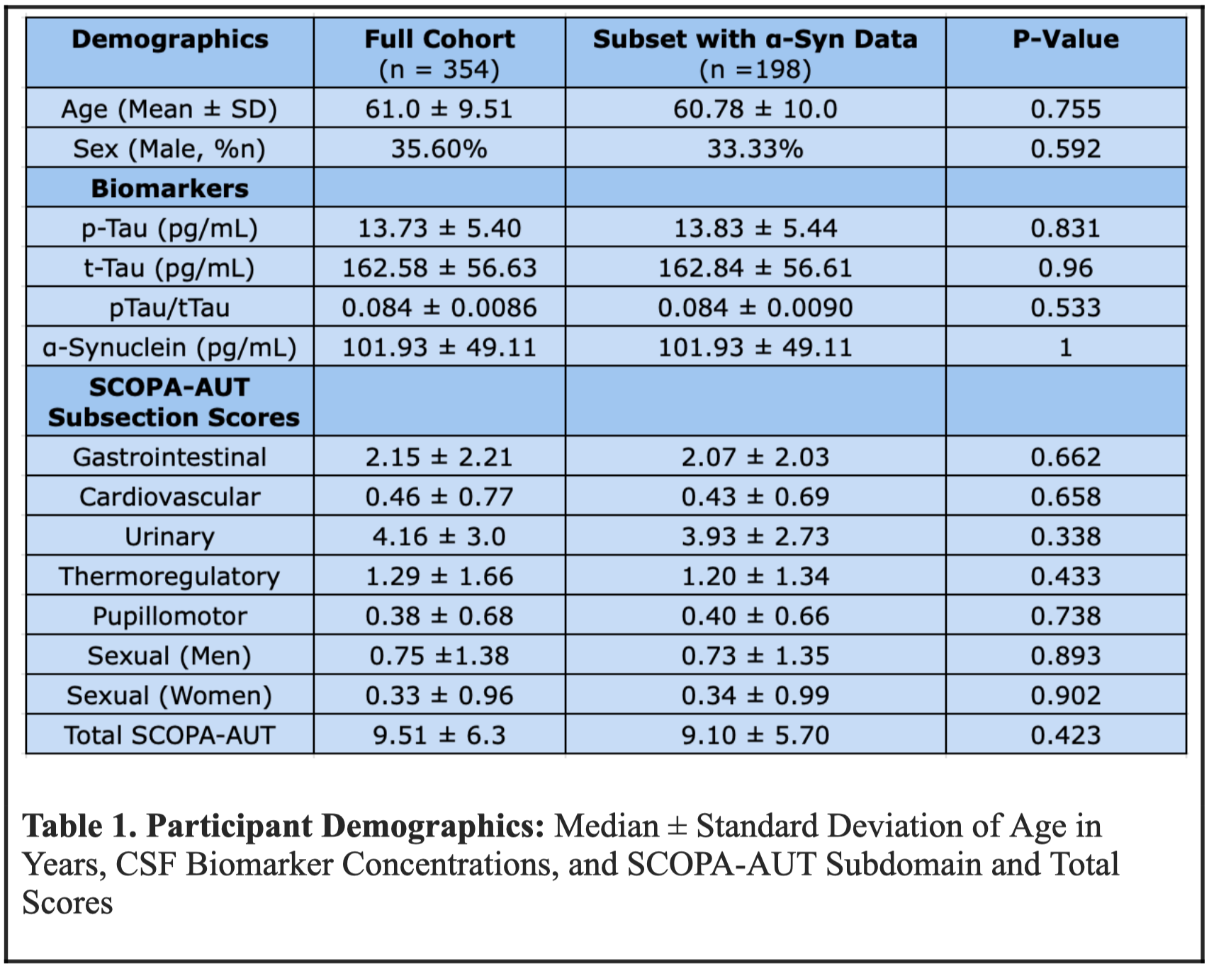 MDS Abstracts - https://www.mdsabstracts.org/abstract/analyzing-longitudinal-correlation-between-csf-tau-alpha-synuclein-and-dysautonomia-in-parkinsons-disease-over-five-years/