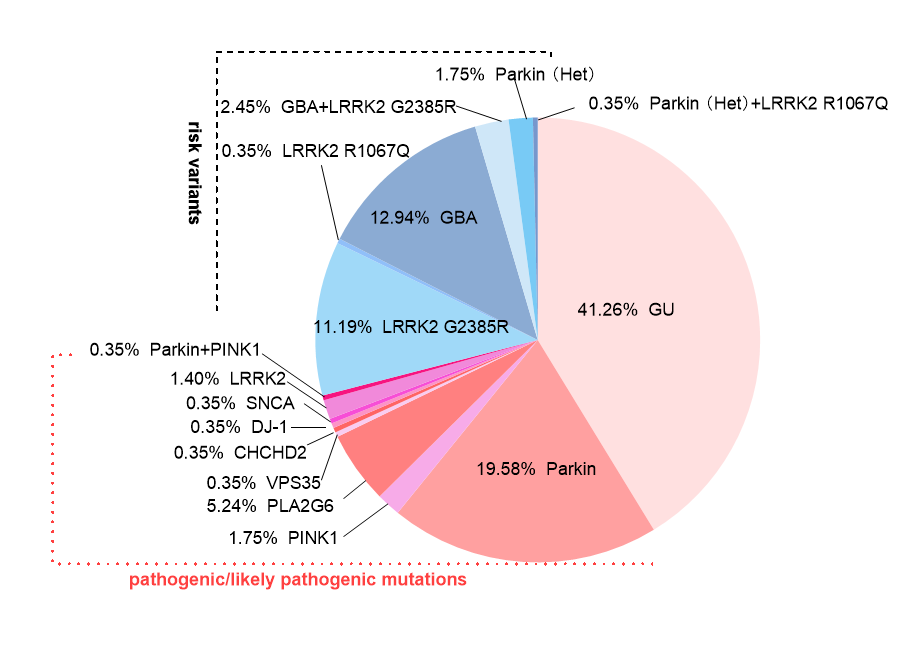 Conclusion: The genotype distribution of EOPD patients varies across different subgroups. Disease progression and clinical features are heterogeneous among patients with different genotypes, suggesting that genotype plays a crucial role in clinical manifestations and progression heterogeneity of EOPD.