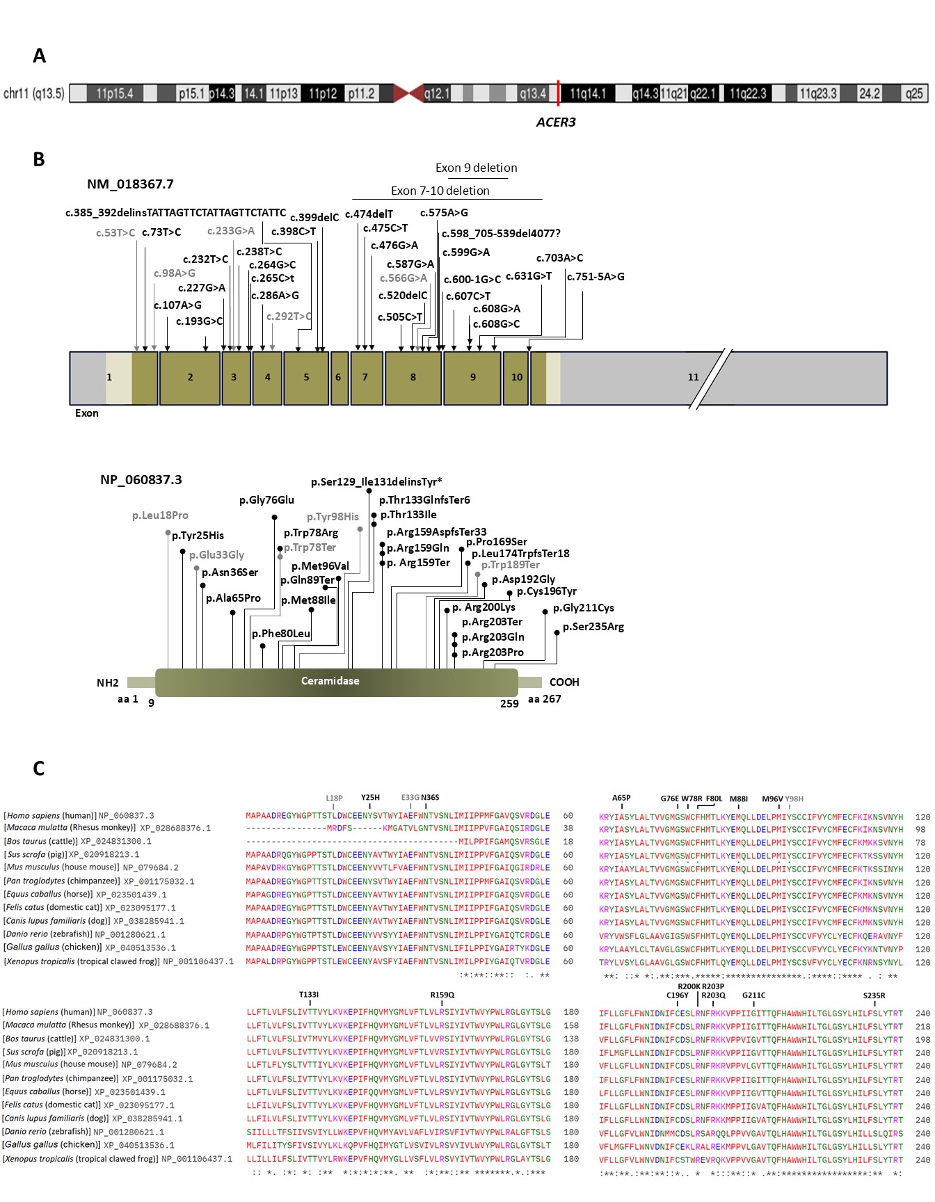 Objective: To delineate the clinical phenotype and molecular spectrum of alkaline ceramidase 3 -related disease (ACER3-RD) by characterizing 60 patients from 55 independent families.