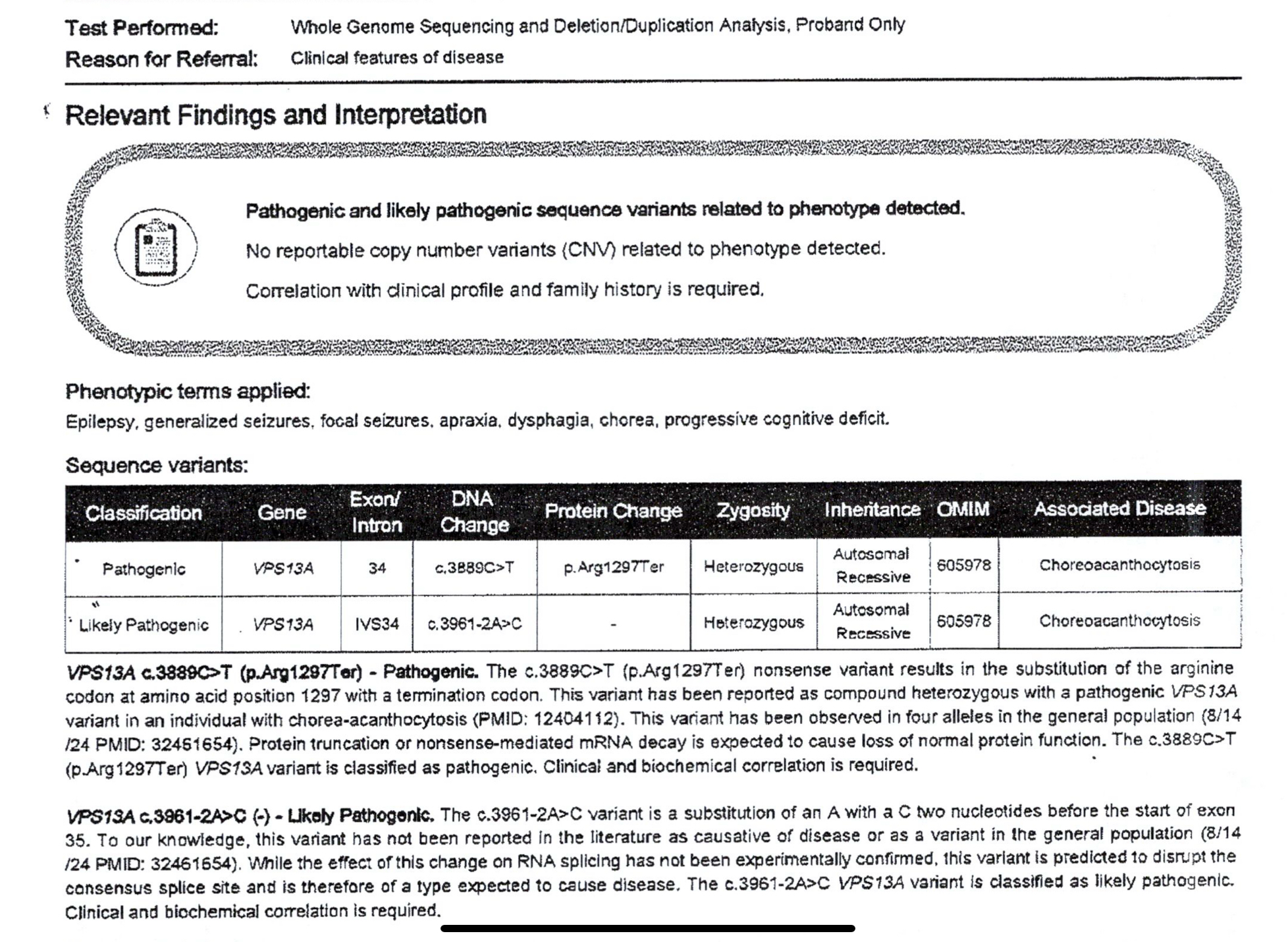 [3] Walker RH, Schulz VP, Tikhonova IR, et al. Genetic diagnosis of neuroacanthocytosis disorders using exome sequencing. Mov Disord. 2012;27(4):539-543. doi:10.1002/mds.24020