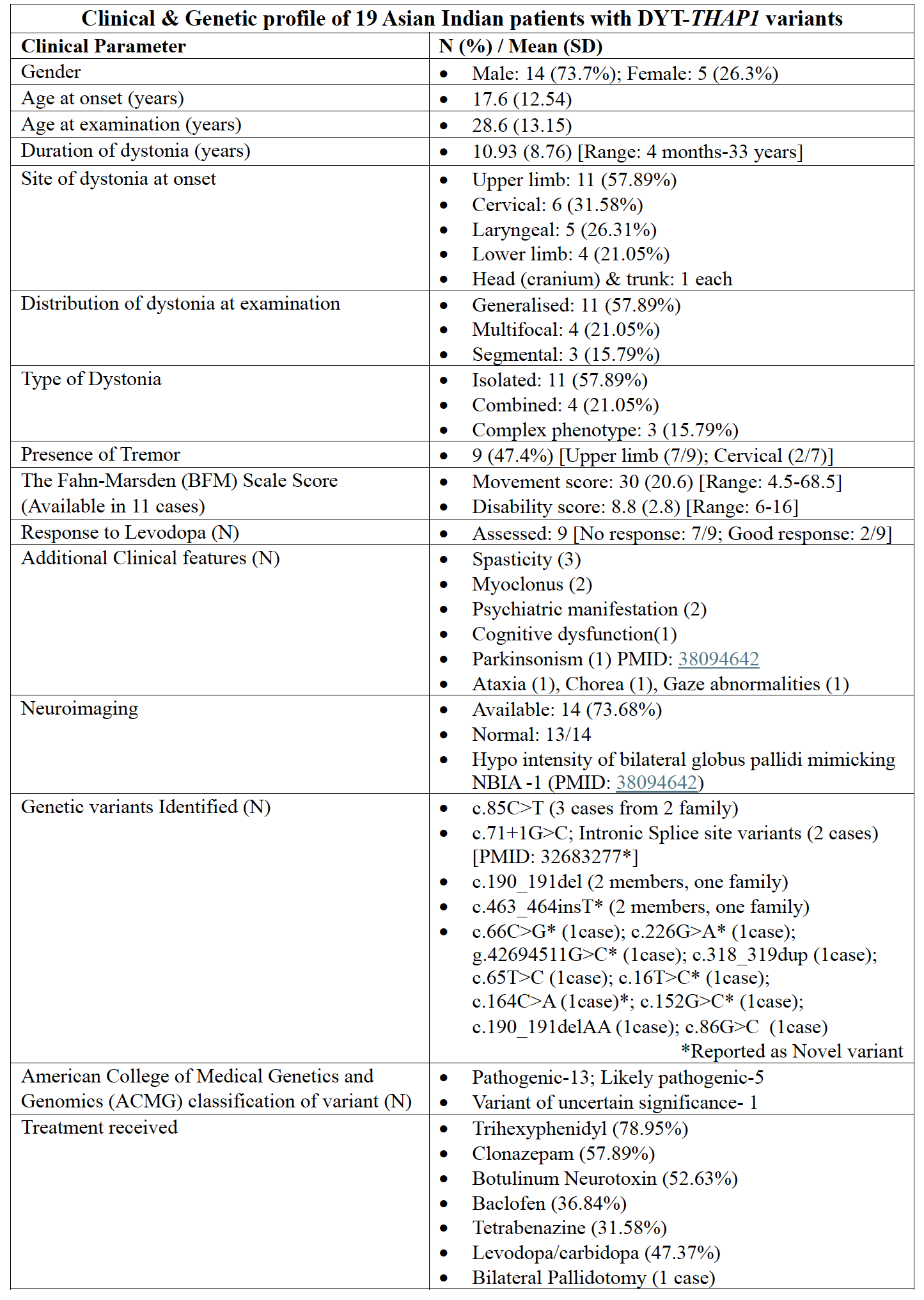 MDS Abstracts - https://www.mdsabstracts.org/abstract/clinical-and-genetic-profile-of-dyt-thap1-in-asian-indian-patients/