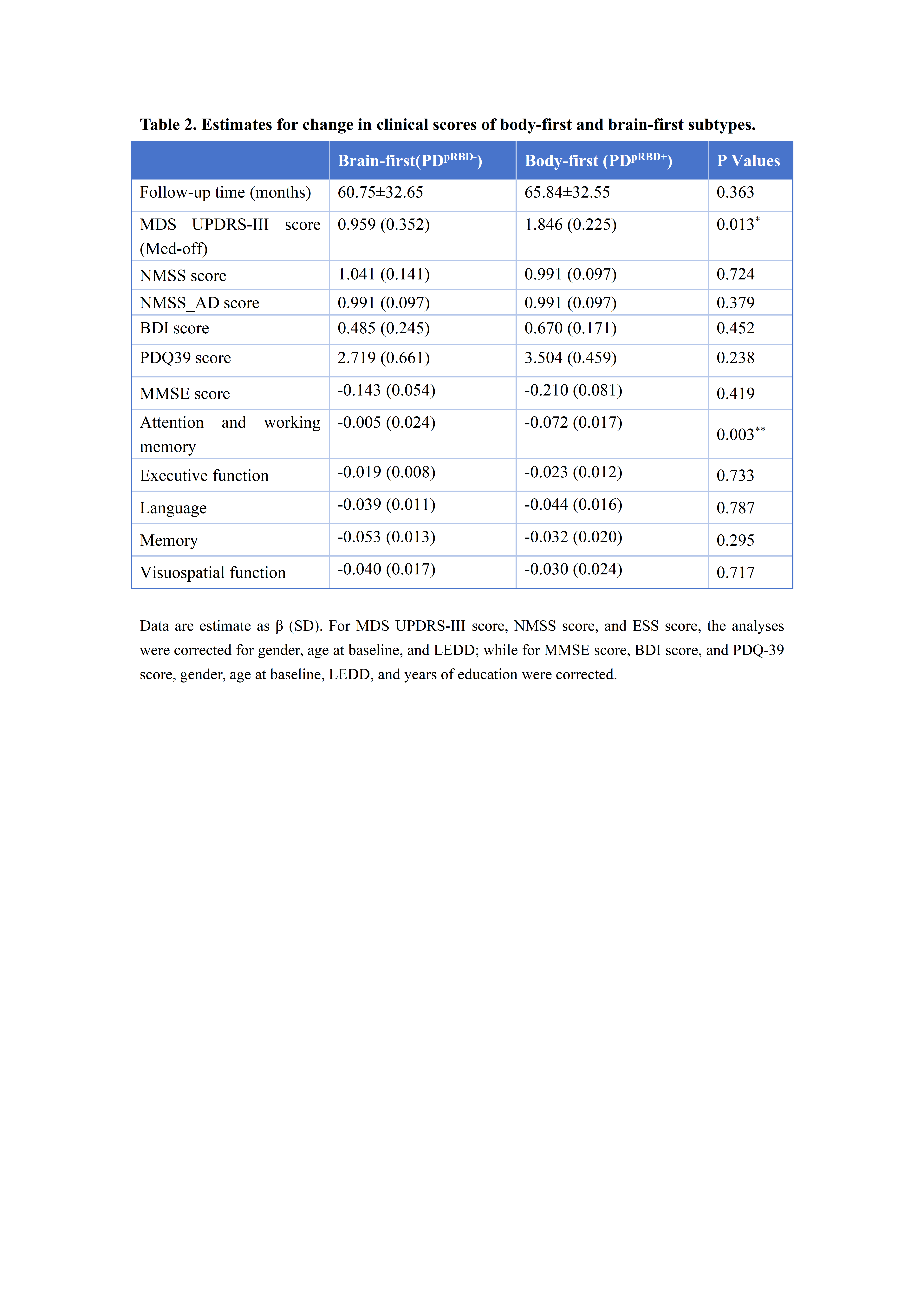 MDS Abstracts - https://www.mdsabstracts.org/abstract/clinical-characteristics-and-biomarkers-in-parkinsons-disease-patients-with-body-first-versus-brain-first-subtypes-in-parkinsons-disease/