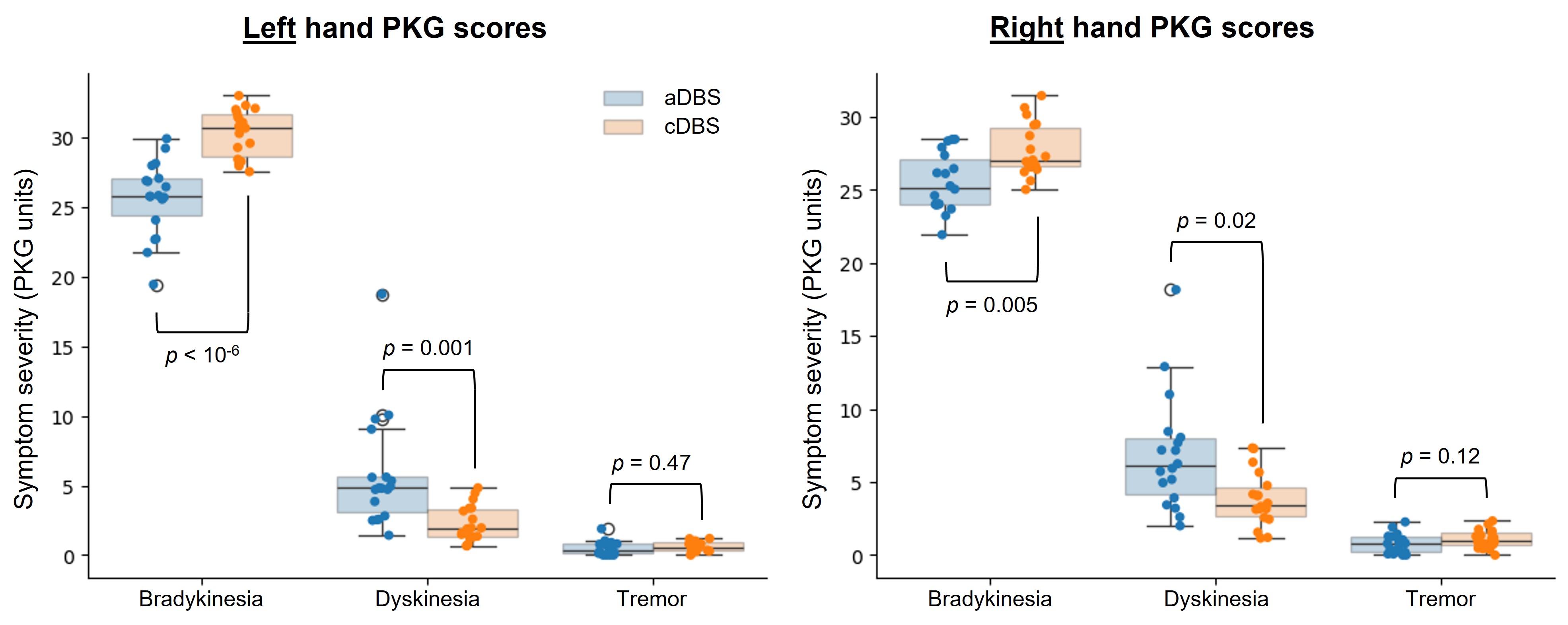 Conclusion: Intracranial neural signals enabled the accurate prediction of real-time, naturalistic forearm movement. Using this as a control signal for closed-loop DBS therapy led to significant improvements in motor function compared to conventional DBS in both acute and chronic settings.