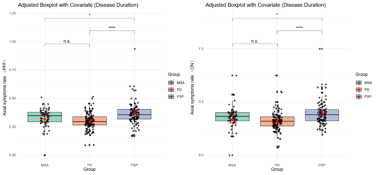 Conclusion: Quantitative analysis of parkinsonism patterns, PD, MSA-P, and PSP can be effectively distinguished.. Key indicators include: 1) axial symptom levodopa responsiveness for PD vs. APD; 2) axial/gait predominance for PSP; 3) asymmetric tremor and lower limb sparing for PD identification.