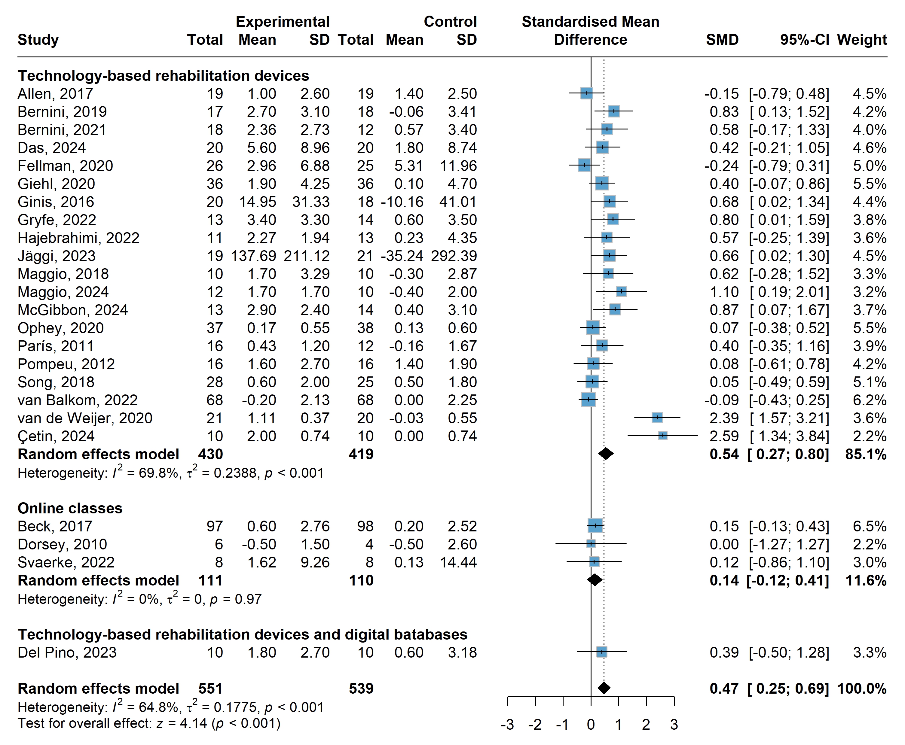 Background: DHIs are technology-driven tools for physical rehabilitation and disease care. With emerging evidence on the efficacy of specific DHIs in PD, a systematic synthesis of their efficacy across PD symptoms is urgently warranted.