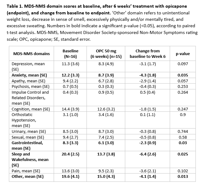 MDS Abstracts - https://www.mdsabstracts.org/abstract/effect-of-opicapone-on-sleep-related-complaints-and-non-motor-burden-in-parkinsons-patients-a-post-hoc-analysis-of-the-oasis-trial/