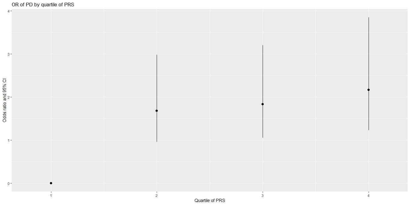 figure3 OR of developing PD for each PRS quartile