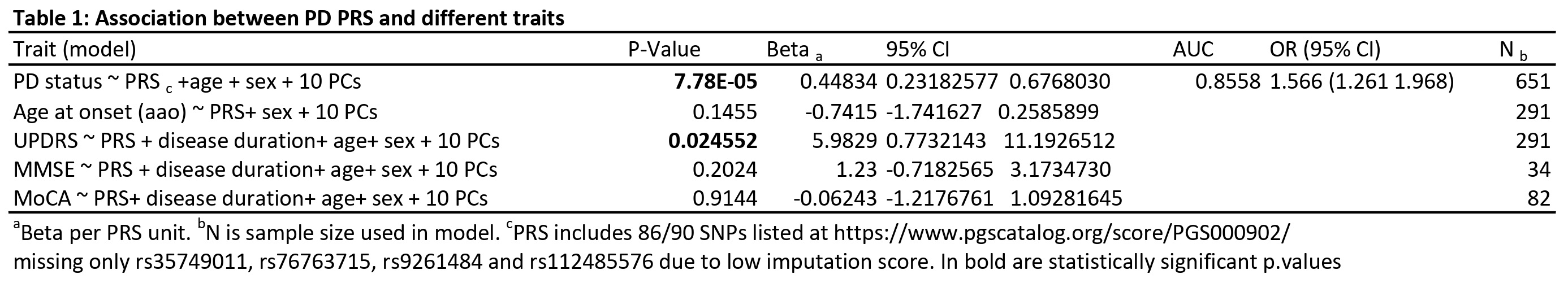 MDS Abstracts - https://www.mdsabstracts.org/abstract/european-derived-parkinsons-disease-polygenic-risk-score-model-is-associated-with-pd-status-updrs-score-but-not-age-at-onset-or-cognitive-impairment-in-an-egyptian-pd-dataset/
