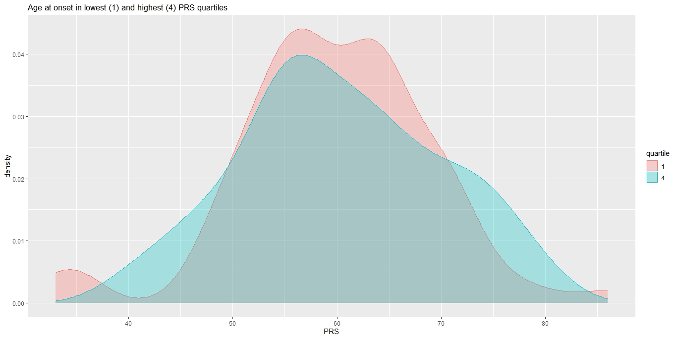 figure4 Age at onset for high vs low PRS quartiles