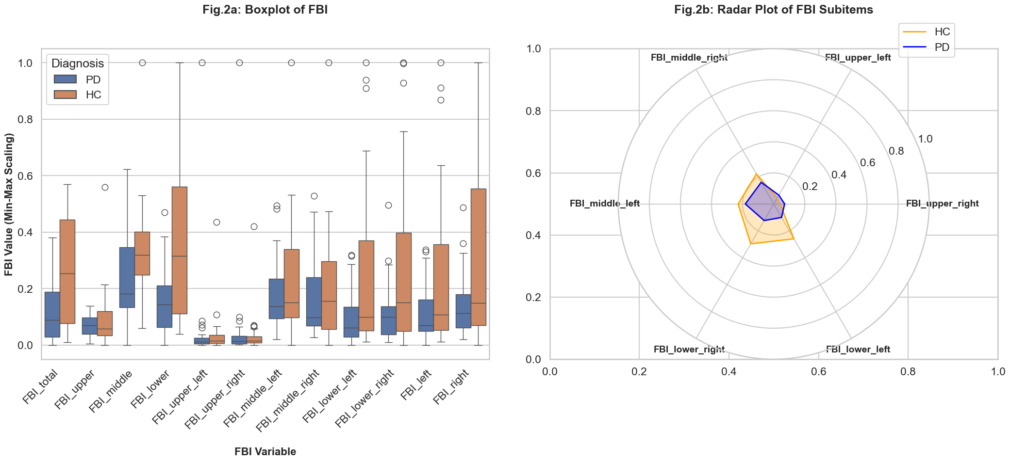 Fig.2: Boxplot and Radar Plot of FBI Subitems