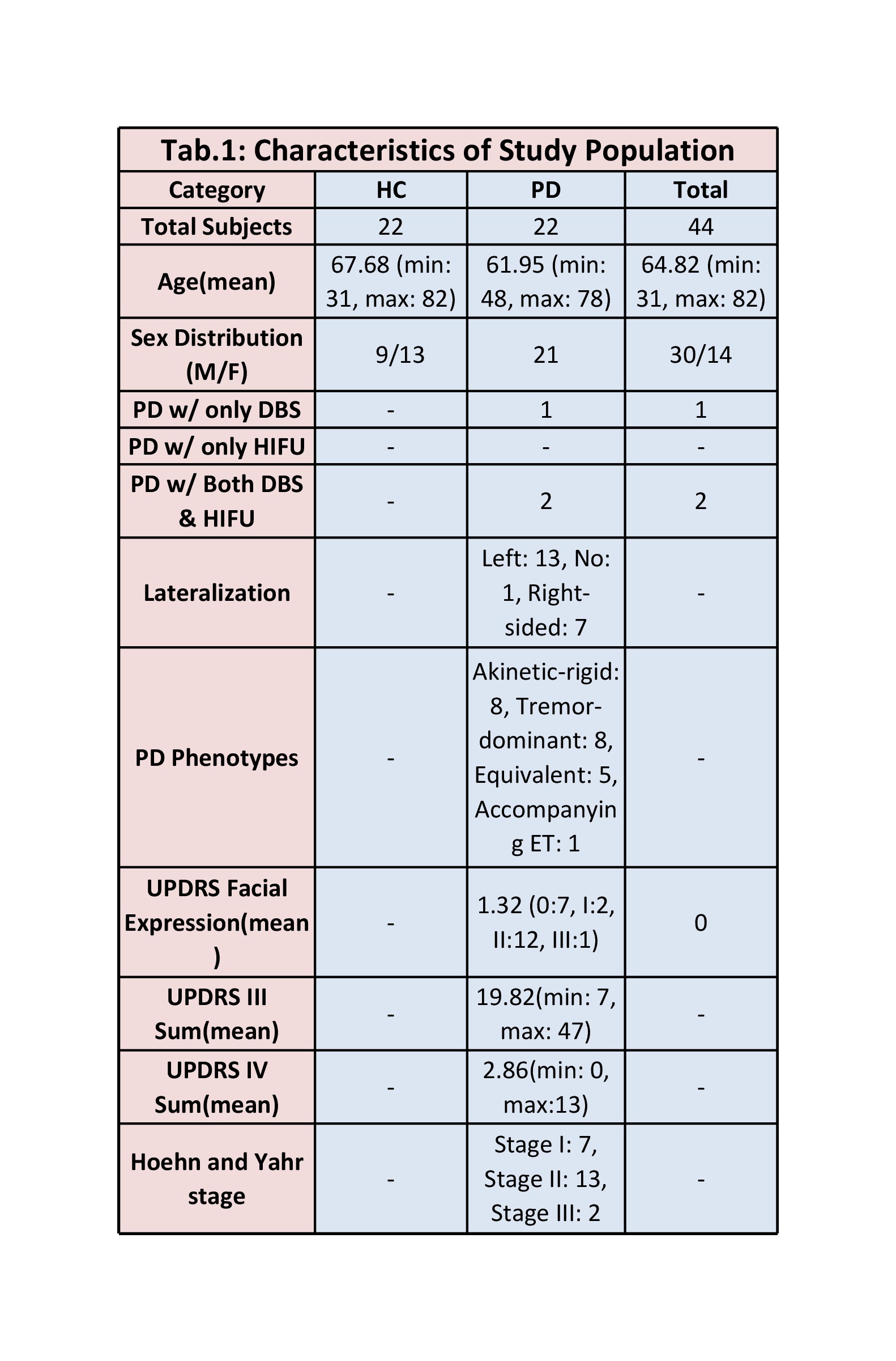 Tab.1: Characteristics of Study Population