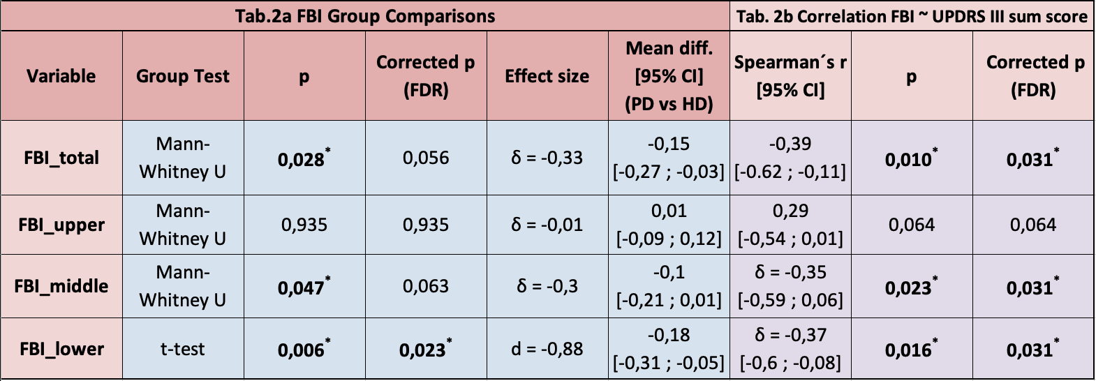 Tab.2 FBI Group Comparisons and Correlations