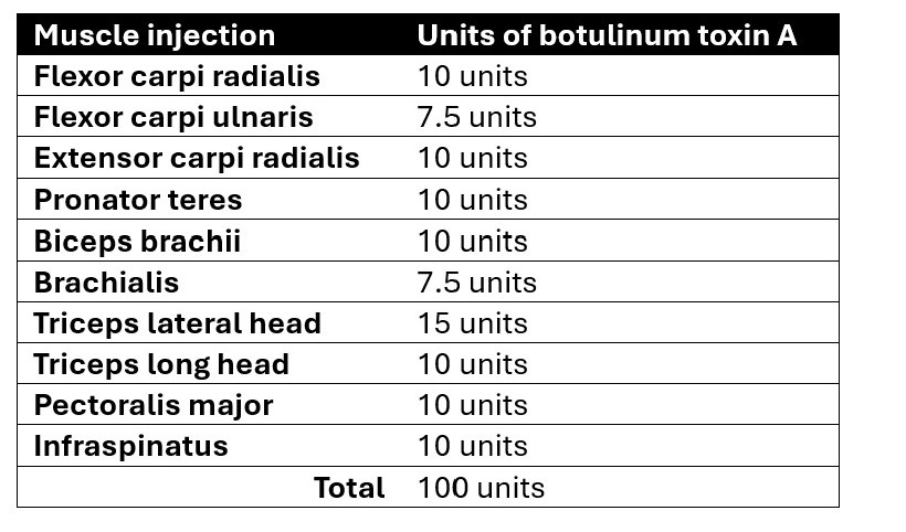 Table 1: Botulinum toxin regimen