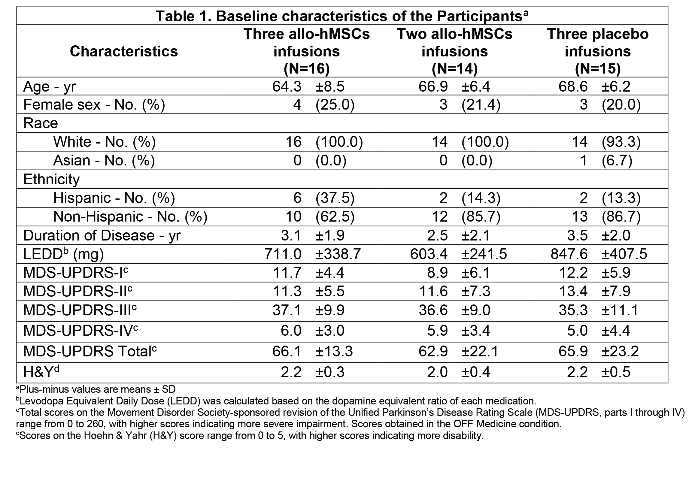 MDS Abstracts - https://www.mdsabstracts.org/abstract/impact-of-allogeneic-mesenchymal-stem-cells-in-motor-and-non-motor-symptoms-of-parkinsons-disease-a-phase-2-randomized-trial/