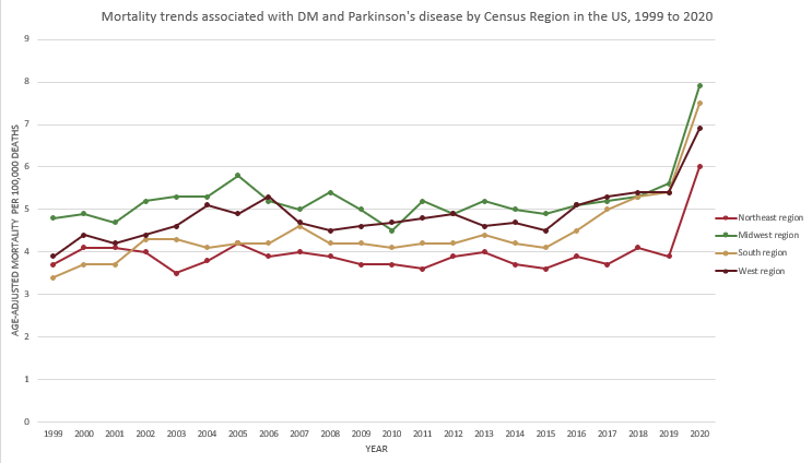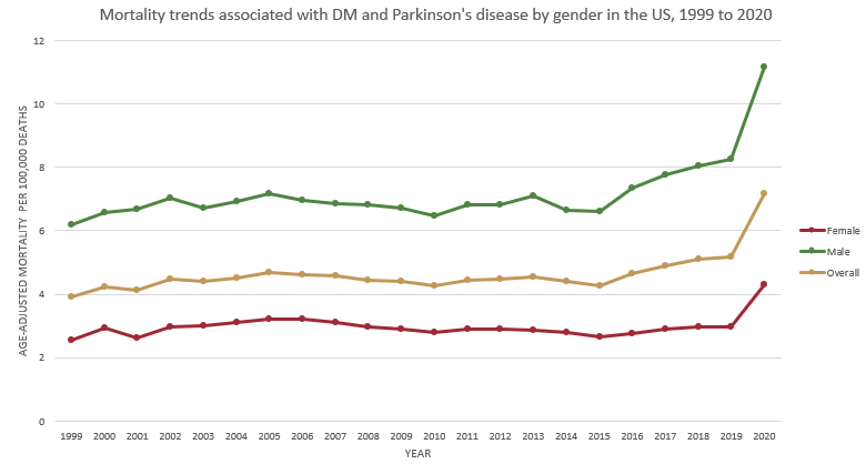 MDS Abstracts - https://www.mdsabstracts.org/abstract/mortality-trends-associated-with-parkinsons-disease-with-diabetes-mellitus-in-the-united-states-1999-2020/