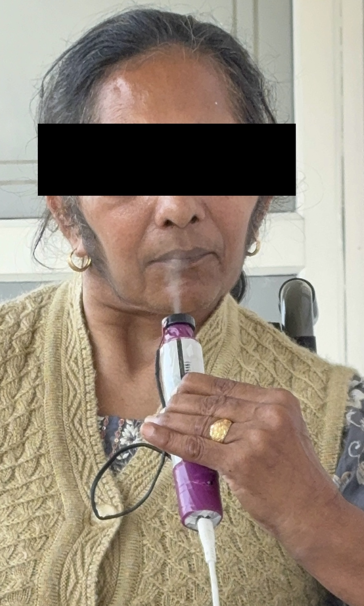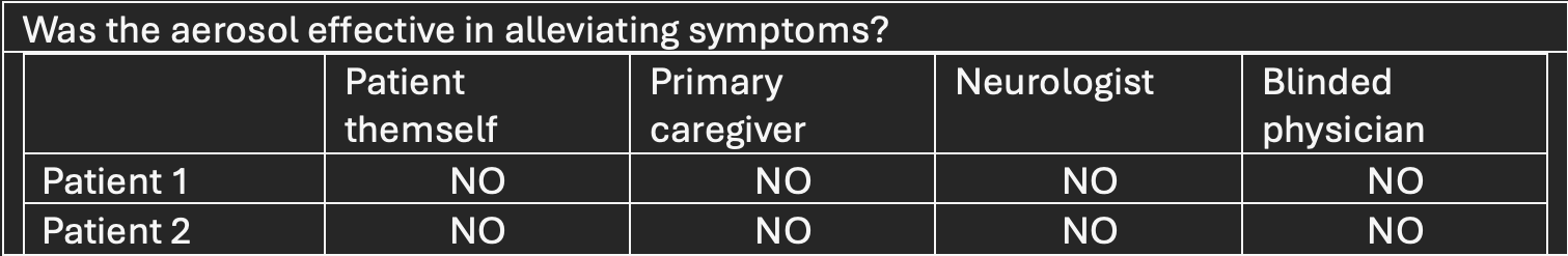 The device (Image.1) was designed to deliver an aerosol without heating the liquid content, to be inhaled by the patients (Image. 2). The formulation of liquid Mucuna extract was equivalent to approximately 33mg/ml of levodopa, and each patient was given 4-5ml of liquid in each session. We used the mister on 2 patients (table.1). Both patients were assessed (Gait, tremor, FOG, etc) by, patients themselves, primary caregiver, 1 neurologist and 1 blinded physician.