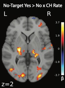 Method: We acquired structural and functional MRI in n=20 participants (DLB: 5, PD: 7, RBD: 7, HC: 1), including a visual conditioned hallucinations (VCH) task. The VCH task began by consistently pairing a tone with a visual stimulus. The target visual stimulus was increasingly presented at sub-threshold intensities and gradually omitted over the course of the experiment. VCH rate was measured as the proportion of trials where participants reported seeing the visual stimulus despite its absence. Whole-brain functional activation was measured during the task, along with its association with VCH rate.