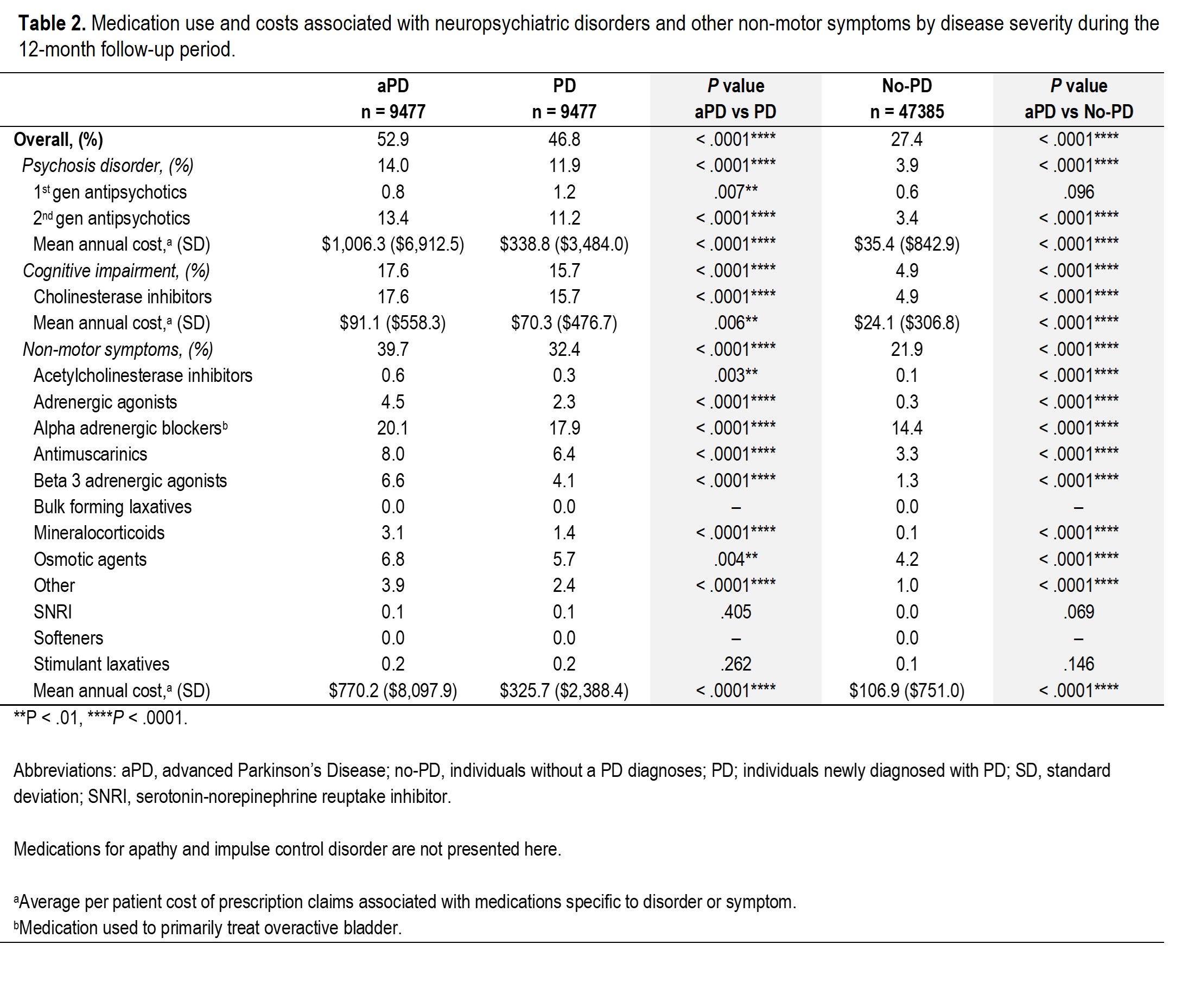 MDS Abstracts - https://www.mdsabstracts.org/abstract/parkinsons-disease-increased-presence-of-neuropsychiatric-symptoms-and-non-motor-issues-drive-higher-medication-use-and-costs/