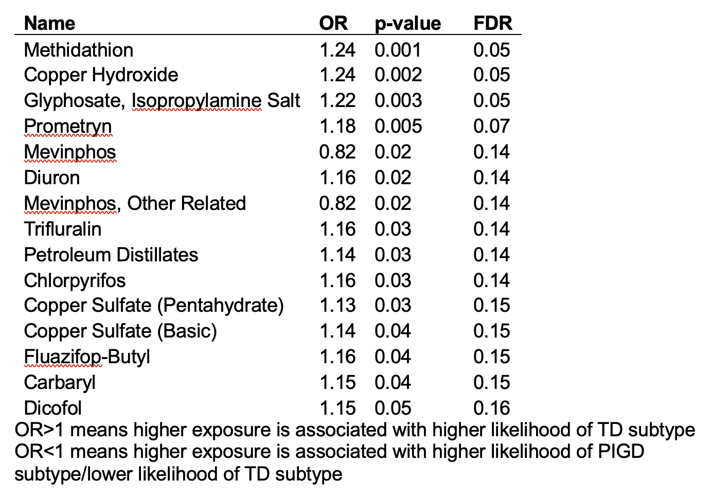 MDS Abstracts - https://www.mdsabstracts.org/abstract/pesticide-exposure-and-parkinsons-disease-motor-subtype/