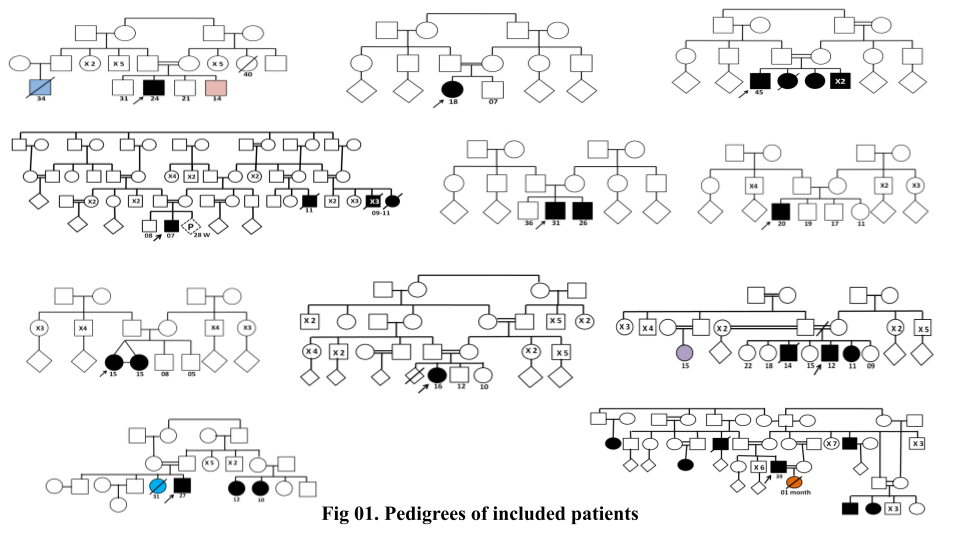 Method: We performed a transversal retrospective study on 14 probands from 11 families (Fig. 01) with a PME phenotype recruited between December 2023 and December 2024 in our epilepsy outpatients clinic.  Prevalence was calculated from family data of other affected members (33 patients).