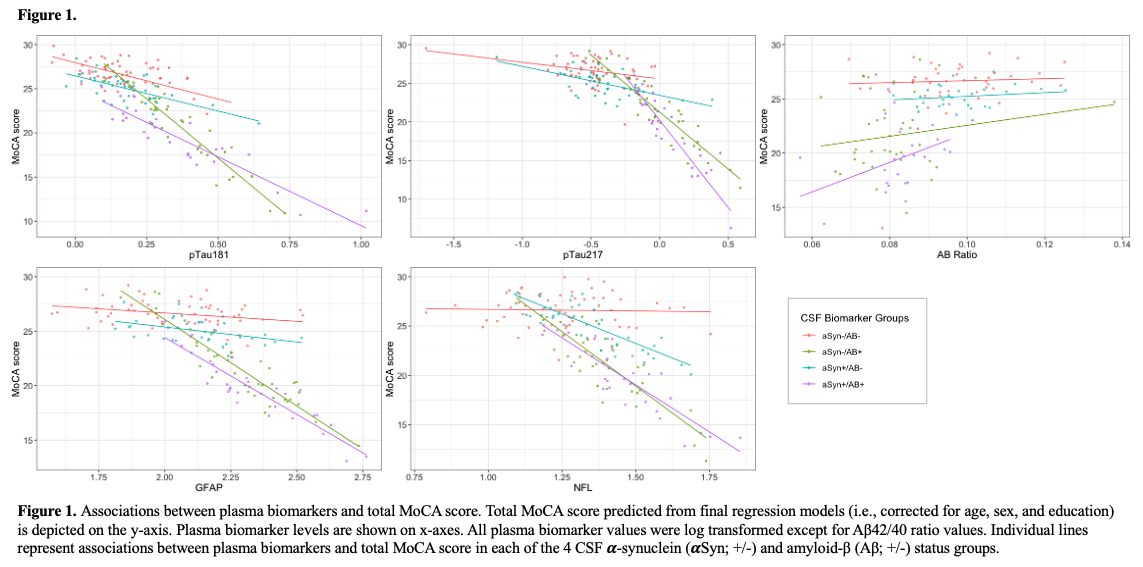 MDS Abstracts - https://www.mdsabstracts.org/abstract/plasma-biomarkers-predict-clinical-outcomes-in-individuals-with-neuronal-%ce%b1-synuclein-disease-and-amyloid-%ce%b2-co-pathology/