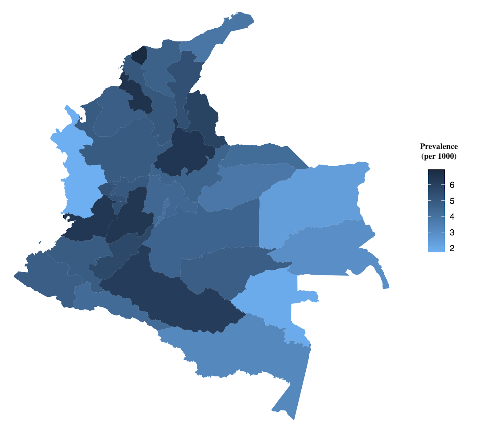 Results: The raw disease prevalence was 5.42 per 1000 people older than 50 years old (6.65 in men and 4.42 in women); and 9.87 per 1000 people older than 65 years old (12.01 in men and 8.15 in women) in Colombia. Although most of the diagnosis kept taking place in the big cities, some smaller cities have increased their rate of diagnosis, suggesting a decrease in underdiagnosis seen in previous years. Prevalence ratios in people older than 50 years were 3.7 and 4.3 for depression and mild depression, respectively, 2.9 for urinary incontinence, 2.4 for obstructive sleep apnea, and 14.3 for dementia