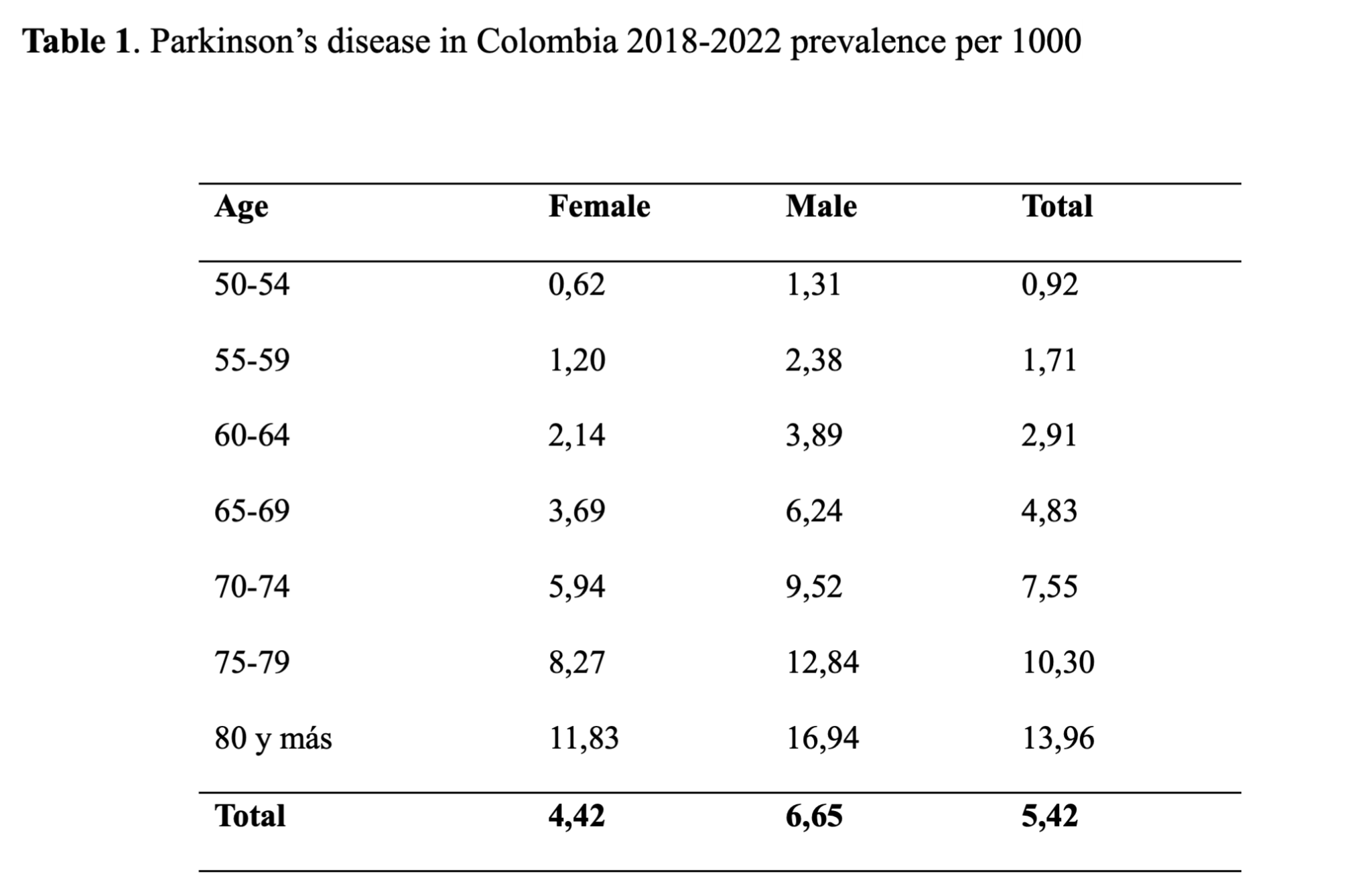 MDS Abstracts - https://www.mdsabstracts.org/abstract/prevalence-demographic-characteristics-of-parkinson-disease-and-associated-comorbidities-an-analysis-of-the-colombian-ministry-of-health-official-registry/