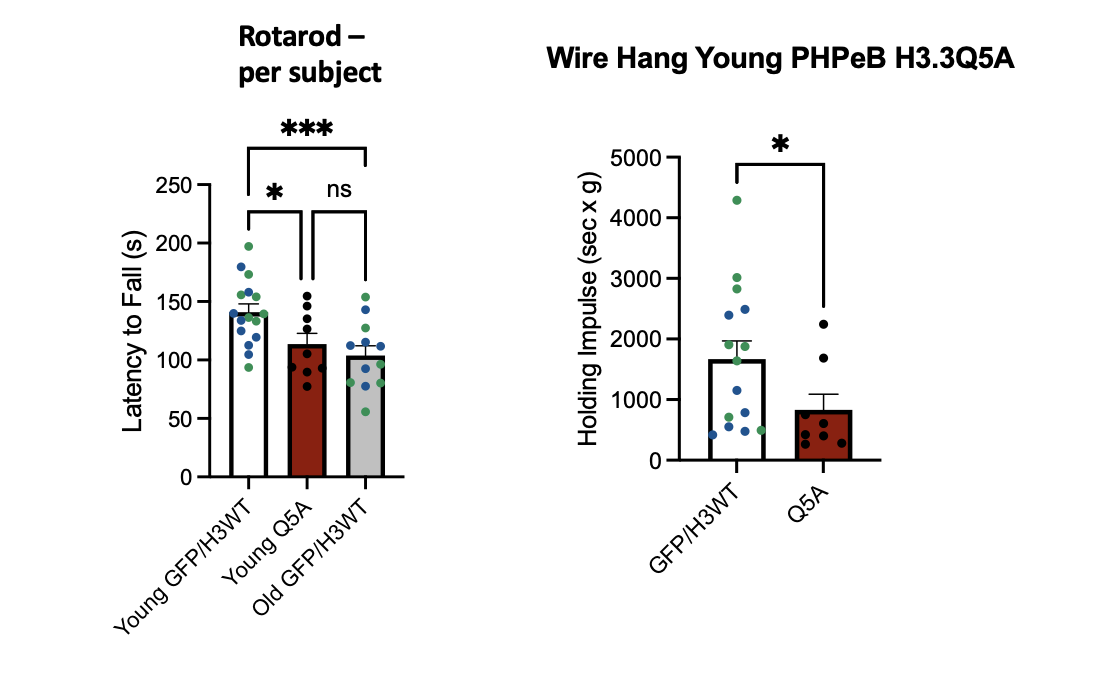 Method: Here, I utilized a novel chemical tagging approach, which covalently modifies dopaminylated proteins, coupled with western blotting to interrogate the alterations to H3Q5dop in postmortem human brain in PD compared to control. Additionally, I utilize an AAV viral approach to mimic the loss of H3Q5dop in the SN in mice and subsequently determine if the loss of H3Q5dop is sufficient to cause behavioral deficits via rotarod and wire hang.