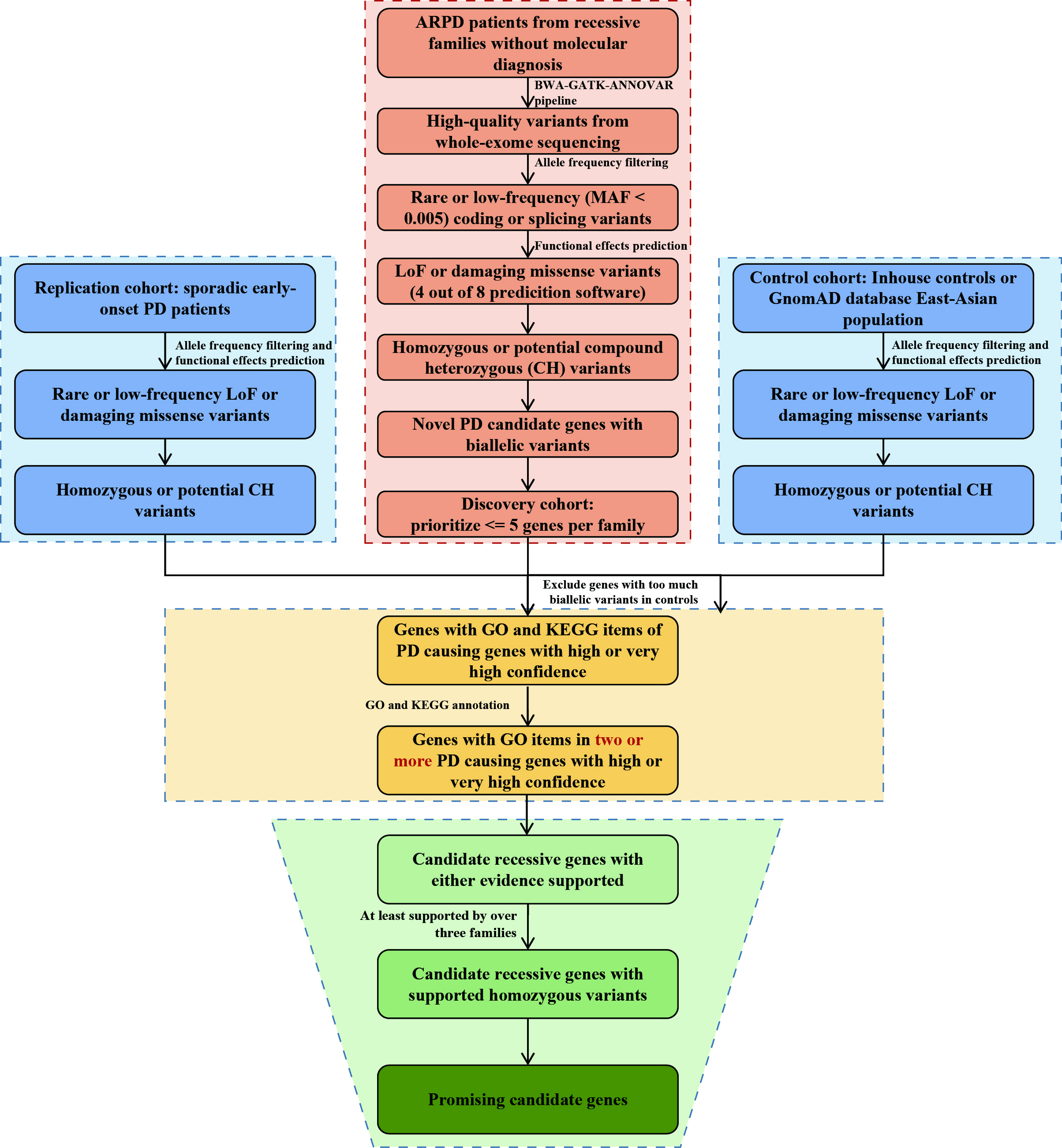 Conclusion: Our study identified 17 candidate genes using a large sample of AR-PD families in the Chinese population, combining NGS and LRS data, which may expand the spectrum of candidate autosomal recessive genes responsible for PD.