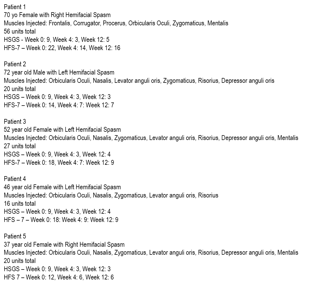 Method: 5 patients diagnosed with HFS were injected with DaxibotulinumtoxinA.
