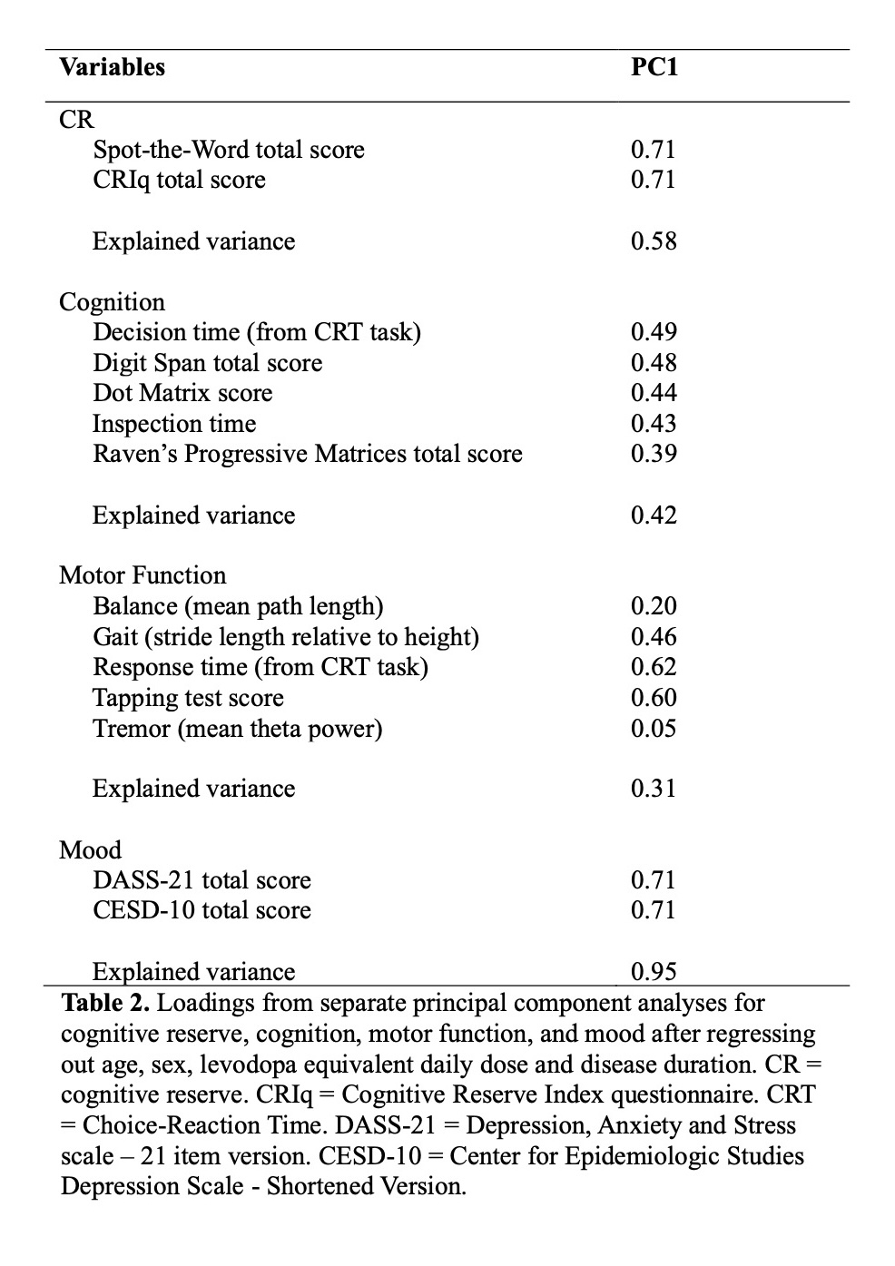 MDS Abstracts - https://www.mdsabstracts.org/abstract/the-associations-between-cognitive-reserve-proxies-multimodal-mri-brain-measures-and-cognition-motor-function-and-mood-in-parkinsons-disease/