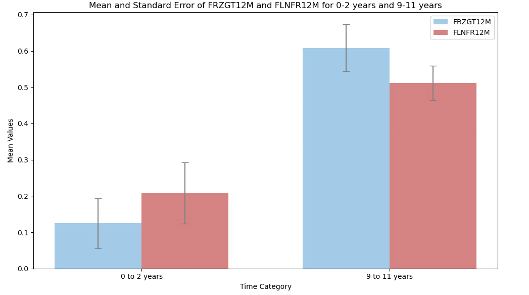 Mean and standard error for FRZGT12M and FLNFR12M