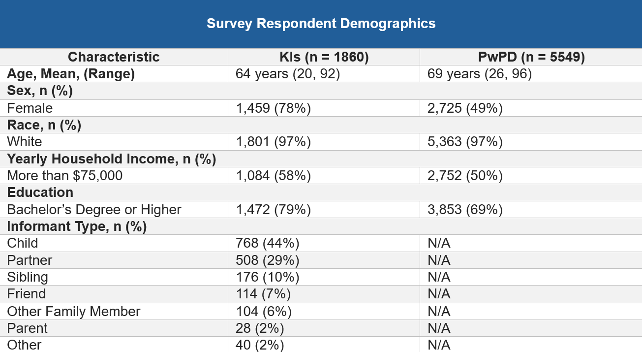 Method: We invited PwPD and KIs, individuals who reported knowing a PwPD prior to their diagnosis, to complete a survey through the Fox Insight online platform. The survey was designed to capture changes reported by PwPD and observed by KIs, including temporal relationship to clinical diagnosis. We subsequently selected a subset of respondents to take part in semi-structured interviews, which were analyzed using inductive qualitative methodology.