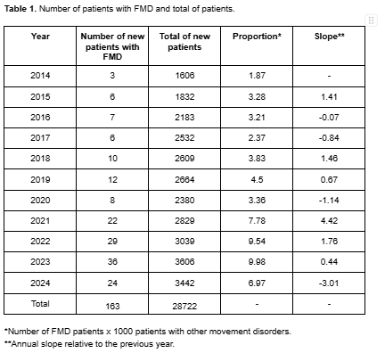 Background: Changes in diagnostic criteria and awareness may have influenced FMD consultation incidence.The pandemic may have also impacted FMD incidence, as observed in functional tics [1]