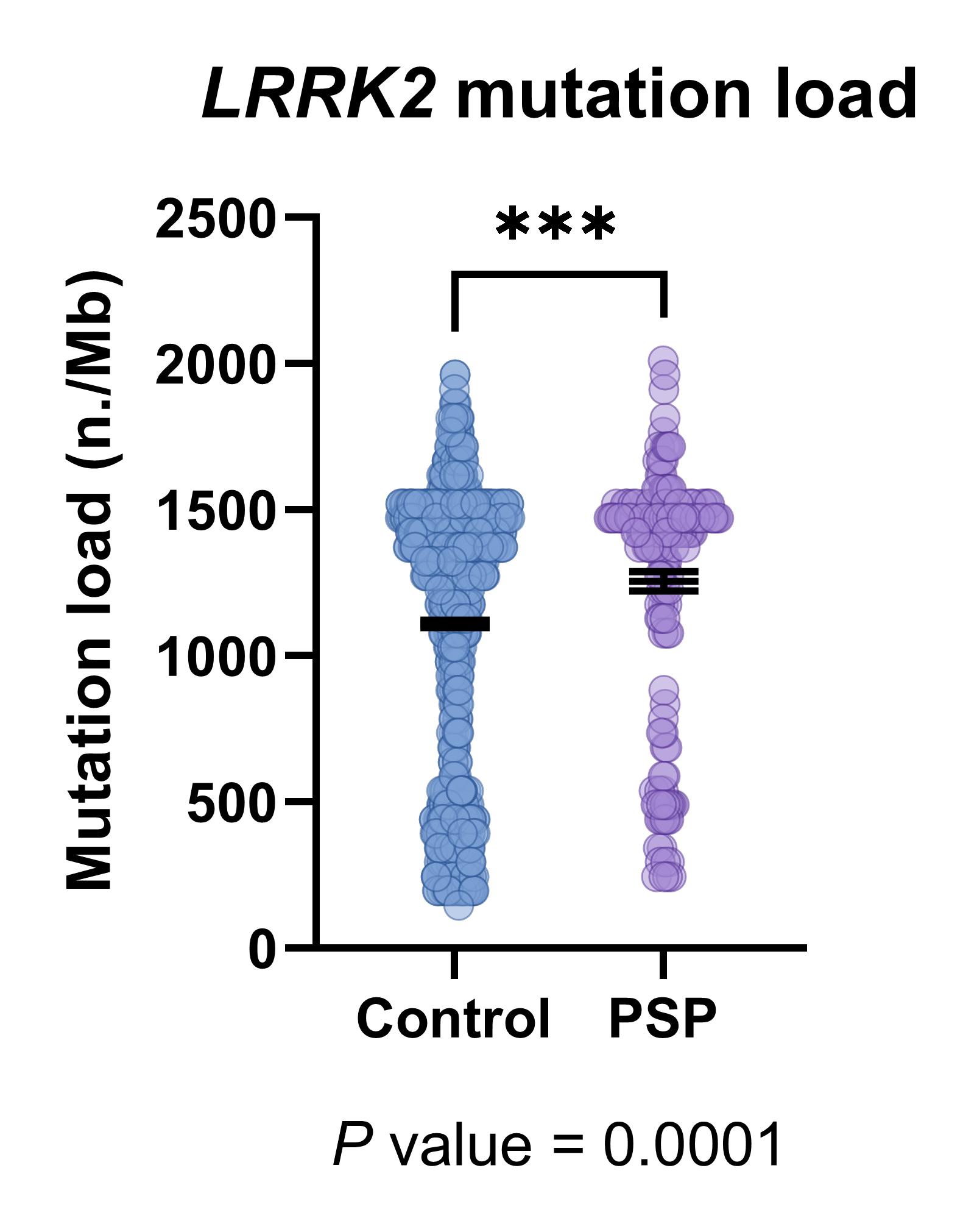 Method: We recruited 177 PSP patients from a Taiwanese cohort and performed whole-exome sequencing to identify potentially pathogenic variants. As a reference cohort, we used whole-genome sequencing data from 1492 asymptomatic individuals in the Taiwan Biobank. To evaluate the mutation burden in MAPT and LRRK2, we compared the genetic data of PSP patients with this ethnicity-matched control cohort.